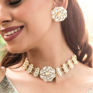 Ethereal Elegance 22K Gold Plated Kundan and Pearl beaded Choker jewelry Set – Gold