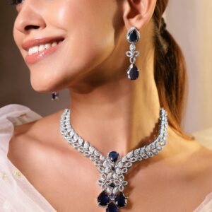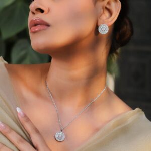 Rhodium Plated Cubic Zirconia Studded Jewellery Set – Silver