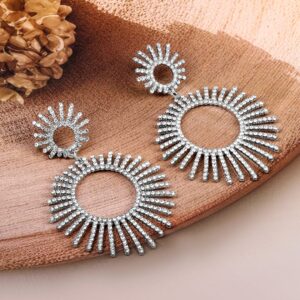 Rhodium-Plated Cubic Zirconia Studded Radiant Sunburst Design Drop Earrings