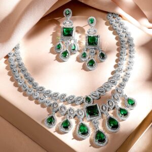 Rhodium-Plated Emerald Green & AAA Cubic Zirconia Luxe Statement Jewellery Set in Silver Tone for Women