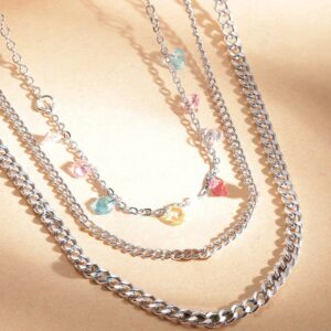 Rhodium-Plated Multicolor Crystal Charms Link Multi-Layered Necklace & Chains