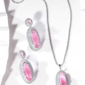 Rhodium plated Pink Crystal Zirconia studded Statement pendant Set – Silver::Pink