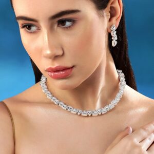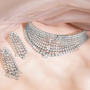 Rhodium-Plated White AAA Cubic Zirconia Studded Premium Choker Jewellery Set for Women – White