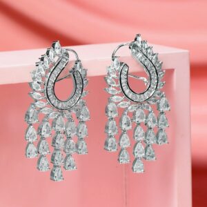 Silver-Plated AAA Cubic Zirconia Studded Premium Long Drop Earrings – Silver