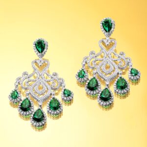 Premium Rhodium plated AAA Cubic Zirconia Emerald Green studded Statement chandelier Earring – Silver