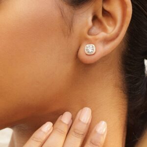 Rhodium-Plated Fully Cubic Zirconia-Studded Dome-Shaped Statement Stud Earrings – Silver
