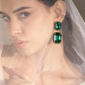 18K Gold-Plated Emerald Cut Crystal Dangle Earrings – Green