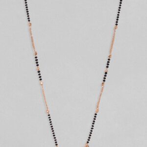 24K Gold Plated Mangalsutra Set With Studded Ad And Earrings – Rose Gold::Black