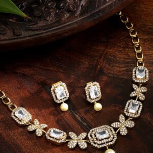 Rhodium-Plated Cubic Zirconia Studded Premium Floral Jewellery Set