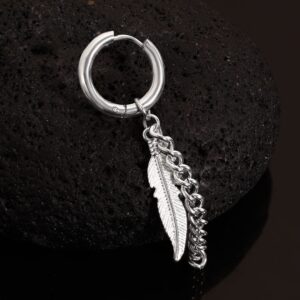 Men’s Stainless Steel Silver-Plated Tarnish-Free Waterproof Feather Chain Earring – Silver