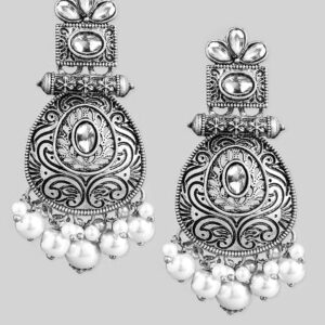 Oxidised Silver-Plated Antique Design Earrings with White Pearl Drops – Silver