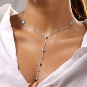 Rhodium-Plated Stainless Steel Tarnish-Free Waterproof Y-Chain Heart Charm Necklace – Silver