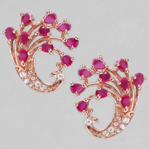 Rose-Gold Plated Peacock Shaped Ruby Studded Earrings – Rose gold