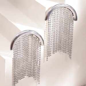 Rhodium-Plated Half-Moon Tassel Earrings with Statement Chains