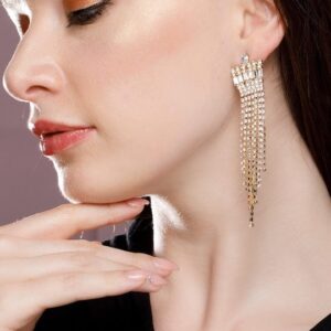 18K Gold Plated Crystal Studded Tassel Earrings – Gold