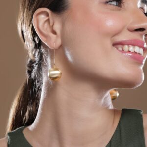 18K Gold Plated Round Sphere Drop Earrings with Long Wire Hook Design – Heart