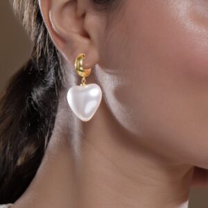 18K Gold Plated Shiny White Pearl Heart Drop Earrings – Gold