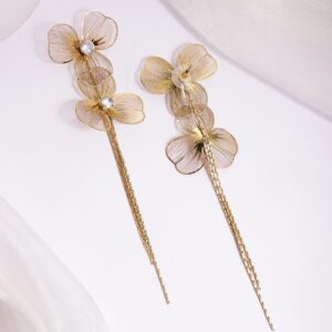 18K Gold-Plated Flower and Fringe Crystal Dangle Earrings – Gold