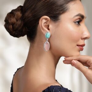 Premium Rhodium Plated Aqua Turquoise and Pink Gemstone Studded Dangle Earrings – Multicolor