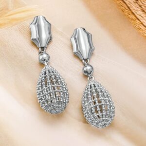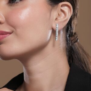 Rhodium-Plated Crystal Cubic Zirconia Studded Contemporary Drop Earrings – Silver