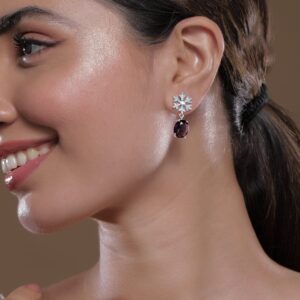 Rhodium-Plated Lavender Cubic Zirconia Studded Drop Earrings – Green