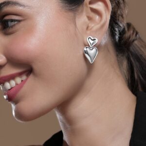 Rhodium-Plated Stainless Steel Tarnish-Free Waterproof Dual Heart Earrings – Silver