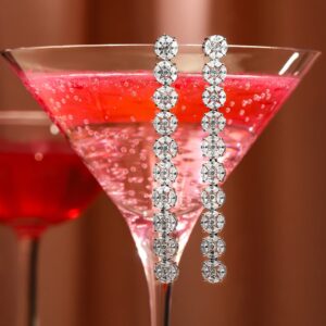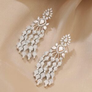 Rhodium Plated Long Cubic Zirconia Studded Statement Drop Earrings – Silver