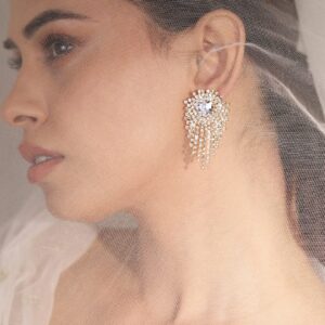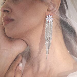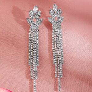 Rhodium-Plated Crystal Dangle Tassel Earrings – Silver