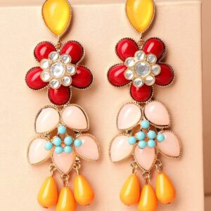 18K Gold-Plated Multi-Color Floral Statement Big Drop Earrings – Gold
