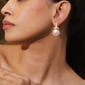 22K Gold Plated Sparkling AD & Cubic Zirconia Studded Floral Motif Pearl Drop Earrings – Gold Plated