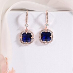 18K Rose Gold-Plated Blue Sapphire & Cubic Zirconia Studded Premium Drop Earrings