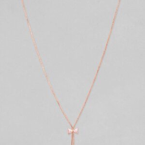18K Rose Gold Plated, Minimal Chain Bow Motif Zircons Studded Drop Pendant Necklace. – Rose Gold