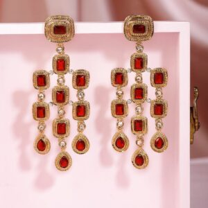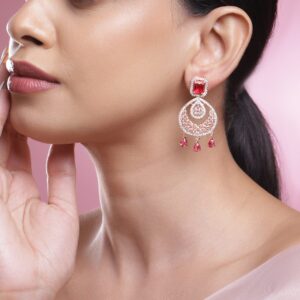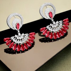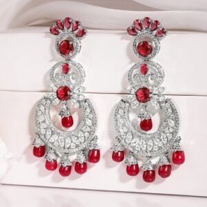 Rhodium-Plated Ruby Red & White Cubic Zirconia Studded Premium Drop Earrings – Red