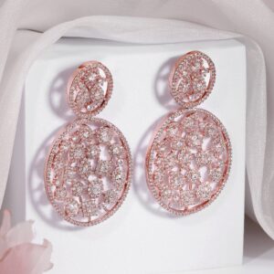 18K Rose Gold-Plated White Cubic Zirconia Studded Premium Drop Earrings – Gold