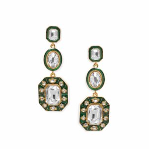 22K Antique Gold plated Kundan Studded Green Enamel Statement Dangle Earring – Green::Gold