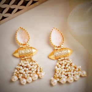 22K Gold Plated Drop Earrings With Studded White Stone And Pearls – Gold