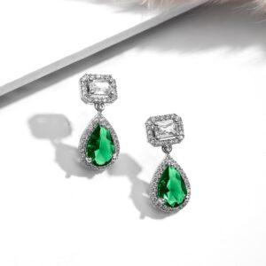 Rhodium-Plated Emerald Green & Cubic Zirconia Studded Premium Drop Earrings – Silver