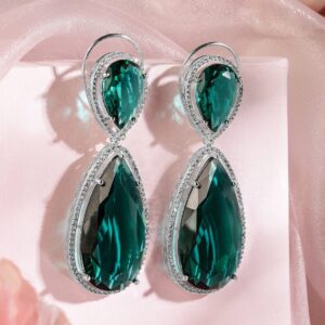 Rhodium plated Zirconia Pave Studded Drop Statement Earrings – Green