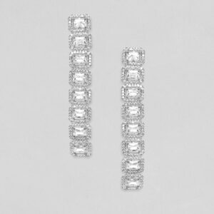 Rhodium Plated Premium Baguette Crystal Studded Dangle Earrings – Silver