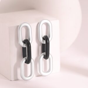 Silver Toned Inter Linked Classic Drop Earrings – Black