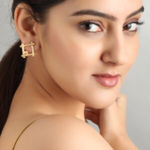 Rhodium-Plated Cubic Zirconia Studded Geometric Drop Earrings – Gold