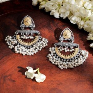 Oxidised Silver & Gold-Plated Dual-Tone Statement Chandelier with Pearl Drops