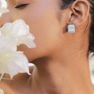 Rhodium Plated White Cubic Zirconia Studded Geometric Stud Earrings – Silver