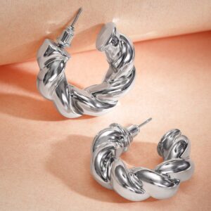 Silver-Plated Chunky Twisted Half Hoop Earrings – Silver