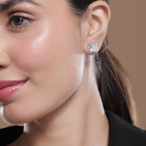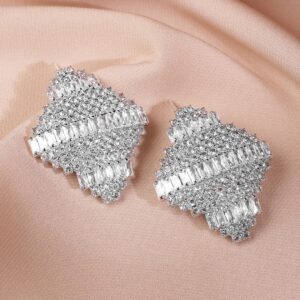 Rhodium-Plated Statement Stud Earrings with Large Princess-Cut Cubic Zirconia – Silver