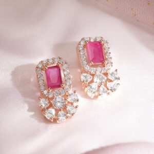 Rose Gold Plated Handcrafted Zircon Stone Stud Earrings – Rose Gold