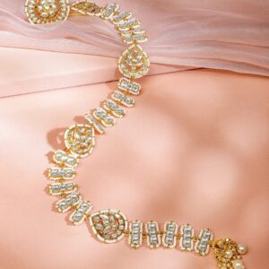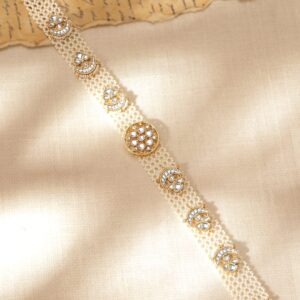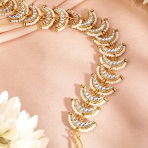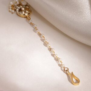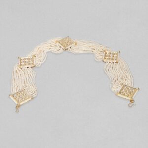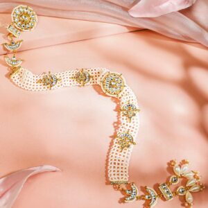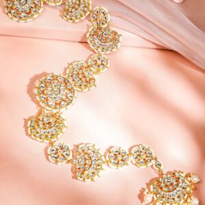 22K Gold-Plated White Kundan & Cream Pearl Beaded Handcrafted Head Jewellery for Women for Brides & Bridesmaids