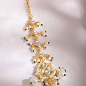 22K Gold Plated Kundan & Pearl Studded Maang Tikka Traditional and Elegant Jewelry – Gold