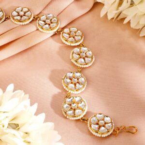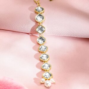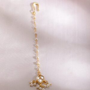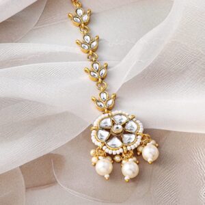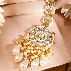 18K Gold-Plated White Kundan & Pearl Beaded Handcrafted Maang Tikka Head Jewellery – Gold