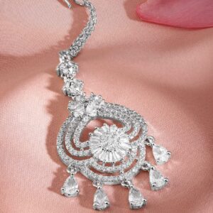 Rhodium-Plated White Cubic Zirconia Studded Statement Maang Tikka – Silver